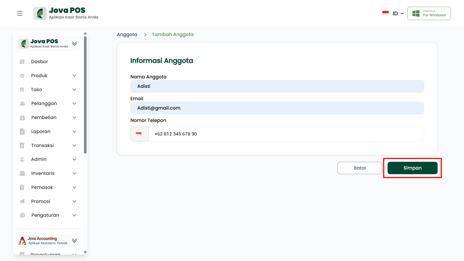 3. Klik Simpan untuk menyimpan atau Batal untuk membatalkan