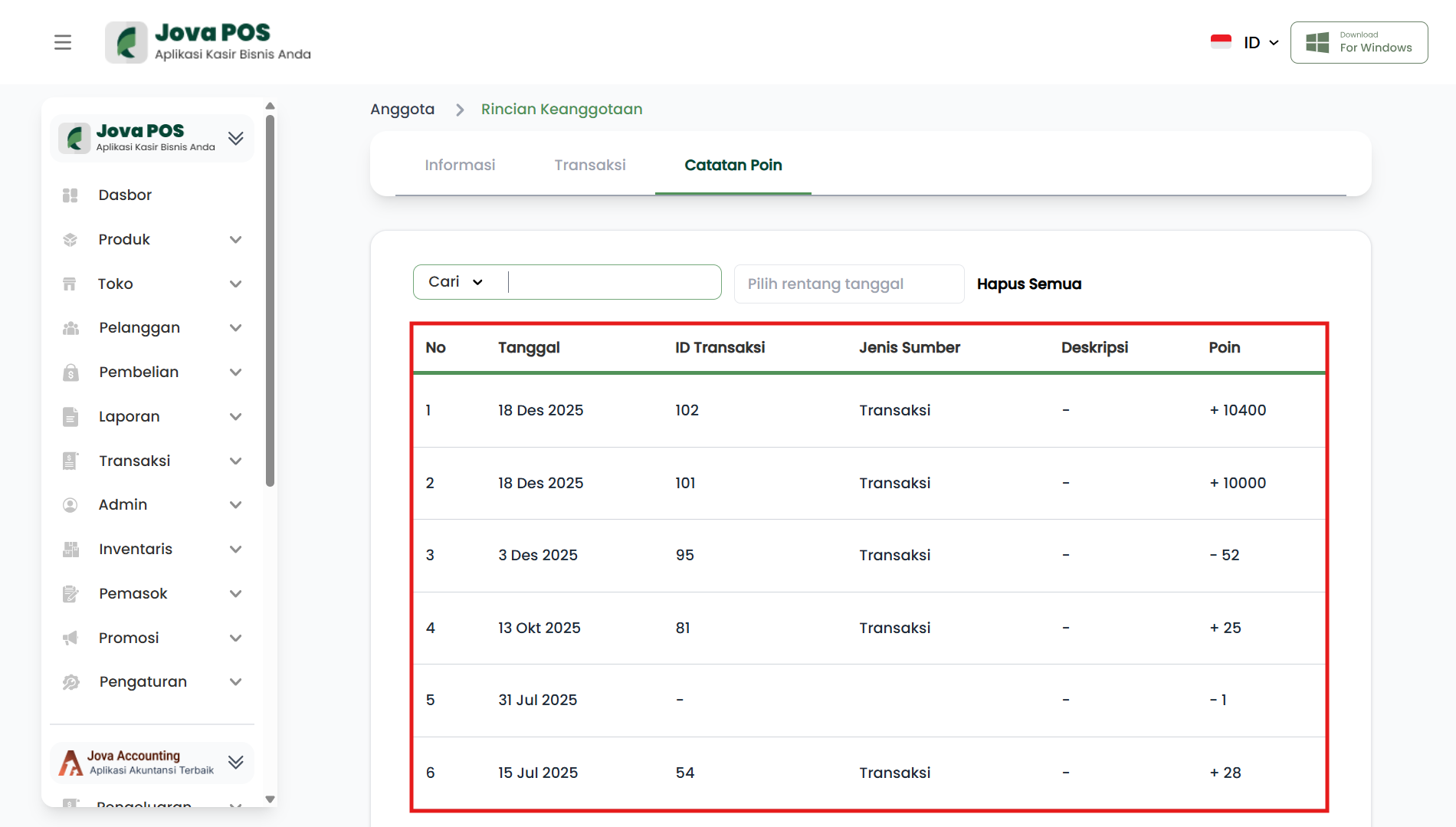 NoTanggalID TransaksiJenis SumberDeskripsiPoin