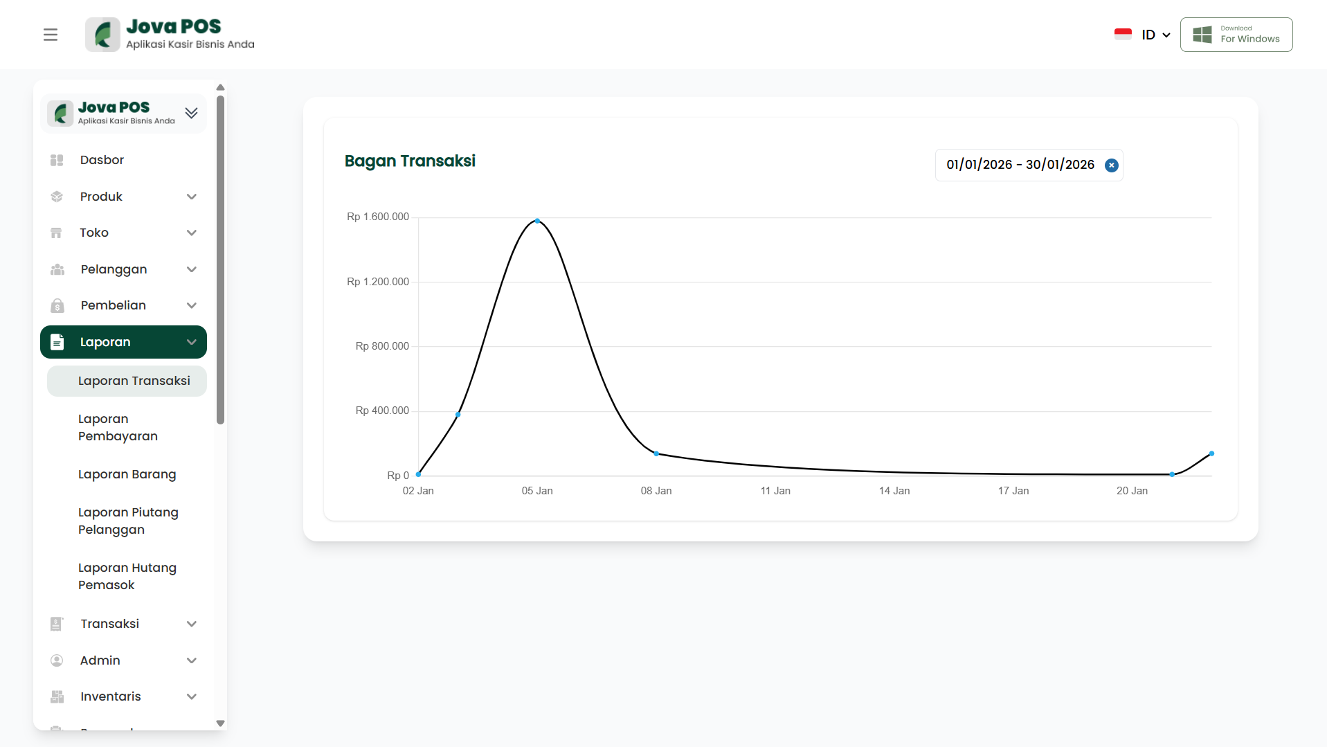 Laporan Transaksi adalah fitur untuk melihat dan menganalisis data transaksi yang dilakukan dalam periode tertentu.
