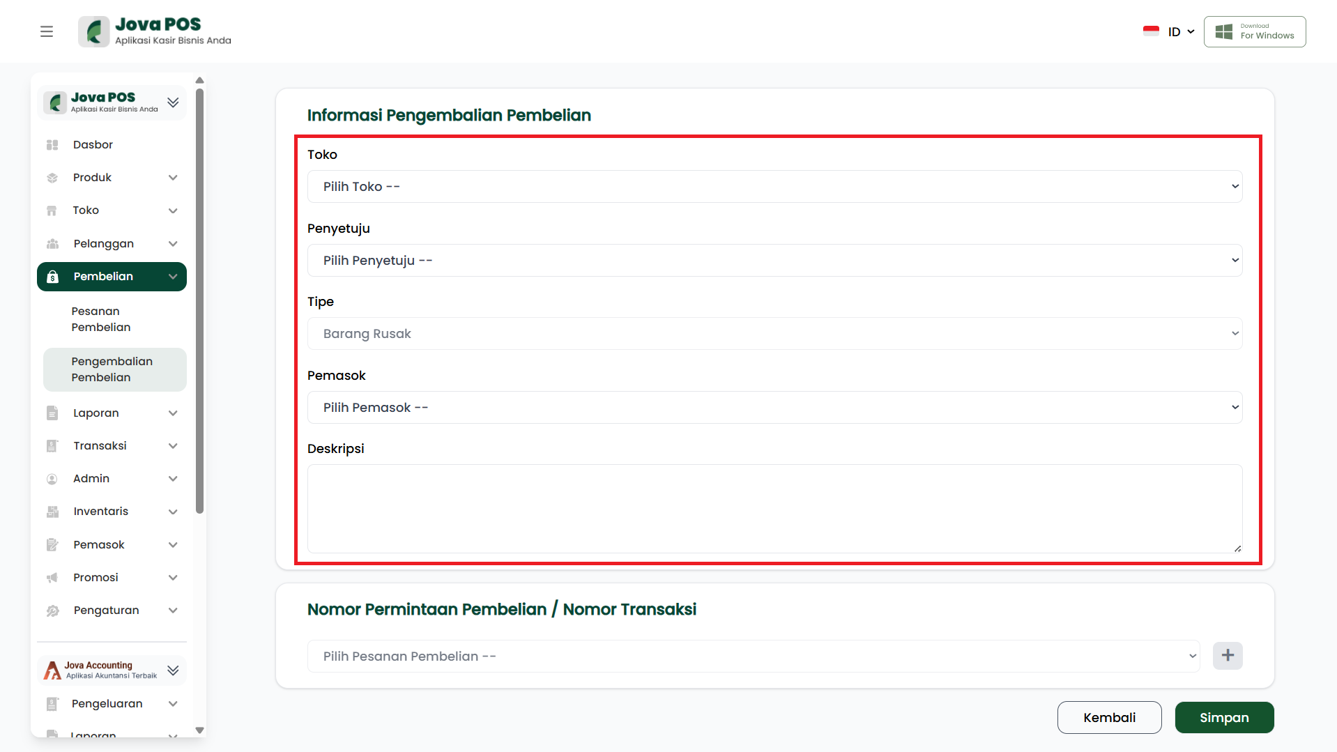 3.1 Mengisi Informasi Pengembalian Pembelian