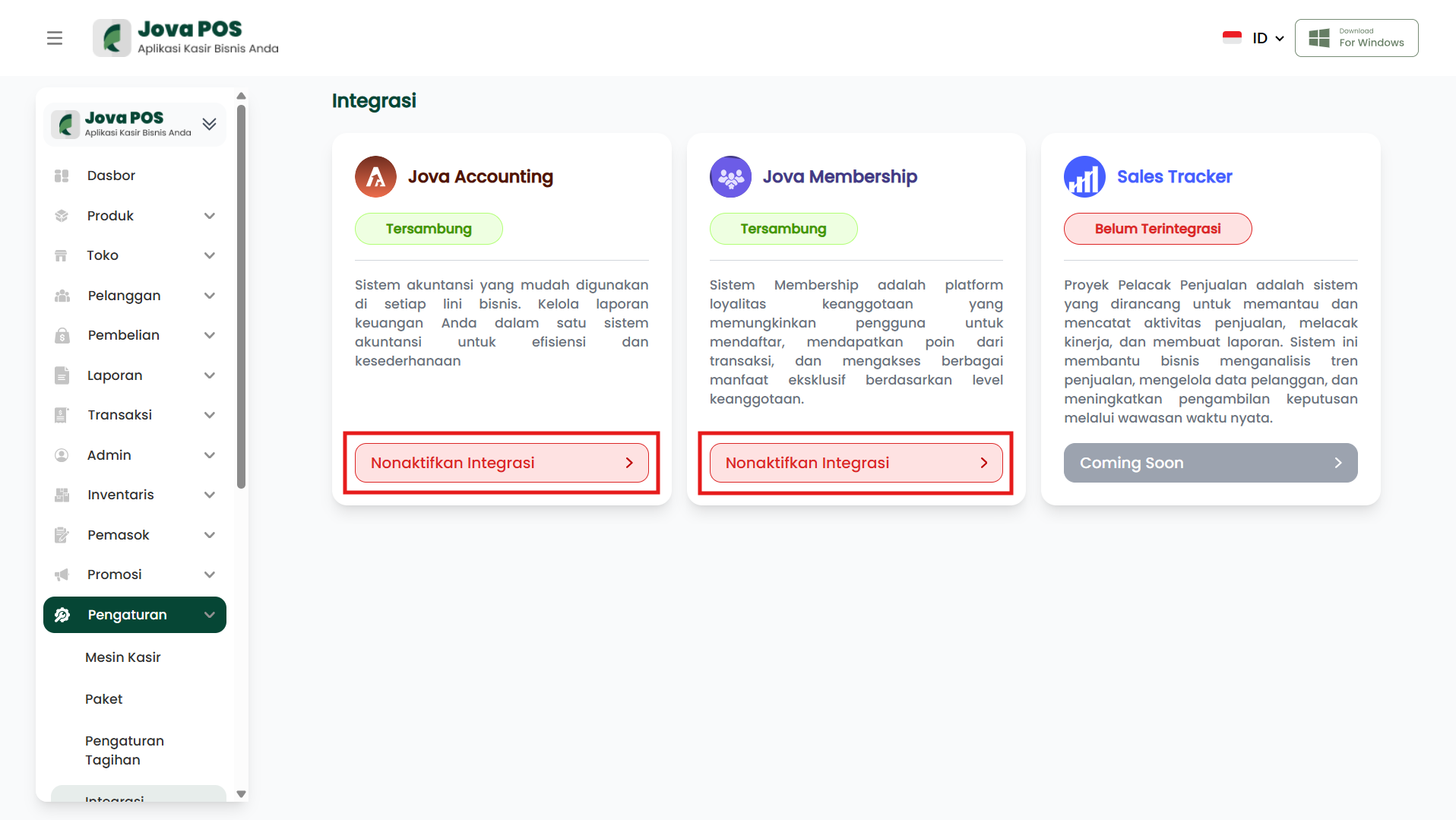 Dengan mengikuti langkah-langkah di atas, Anda dapat mengelola integrasi di Jova POS untuk memastikan bahwa sistem POS Anda terhubung dengan sistem lain yang Anda gunakan, sesuai kebutuhan bisnis Anda.