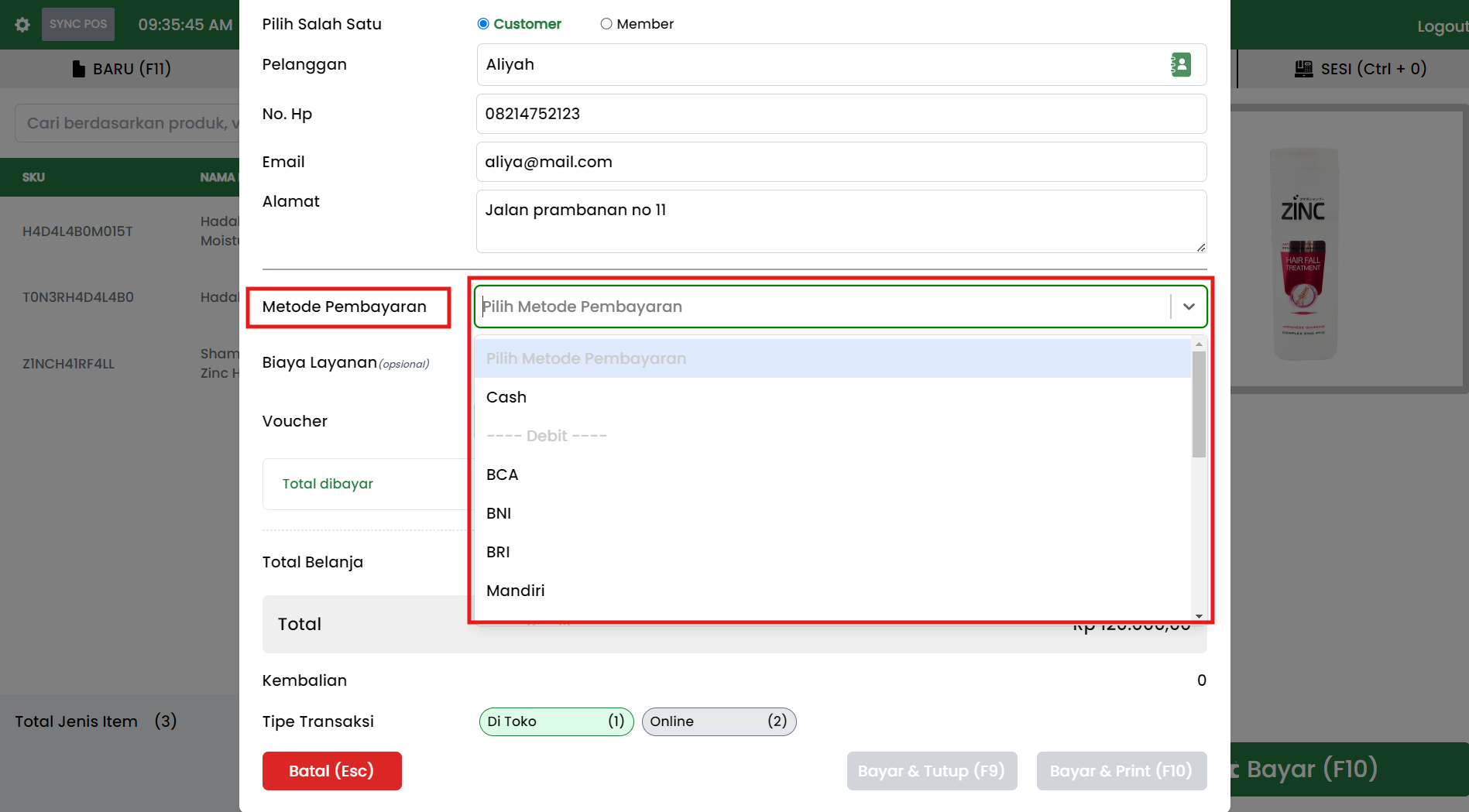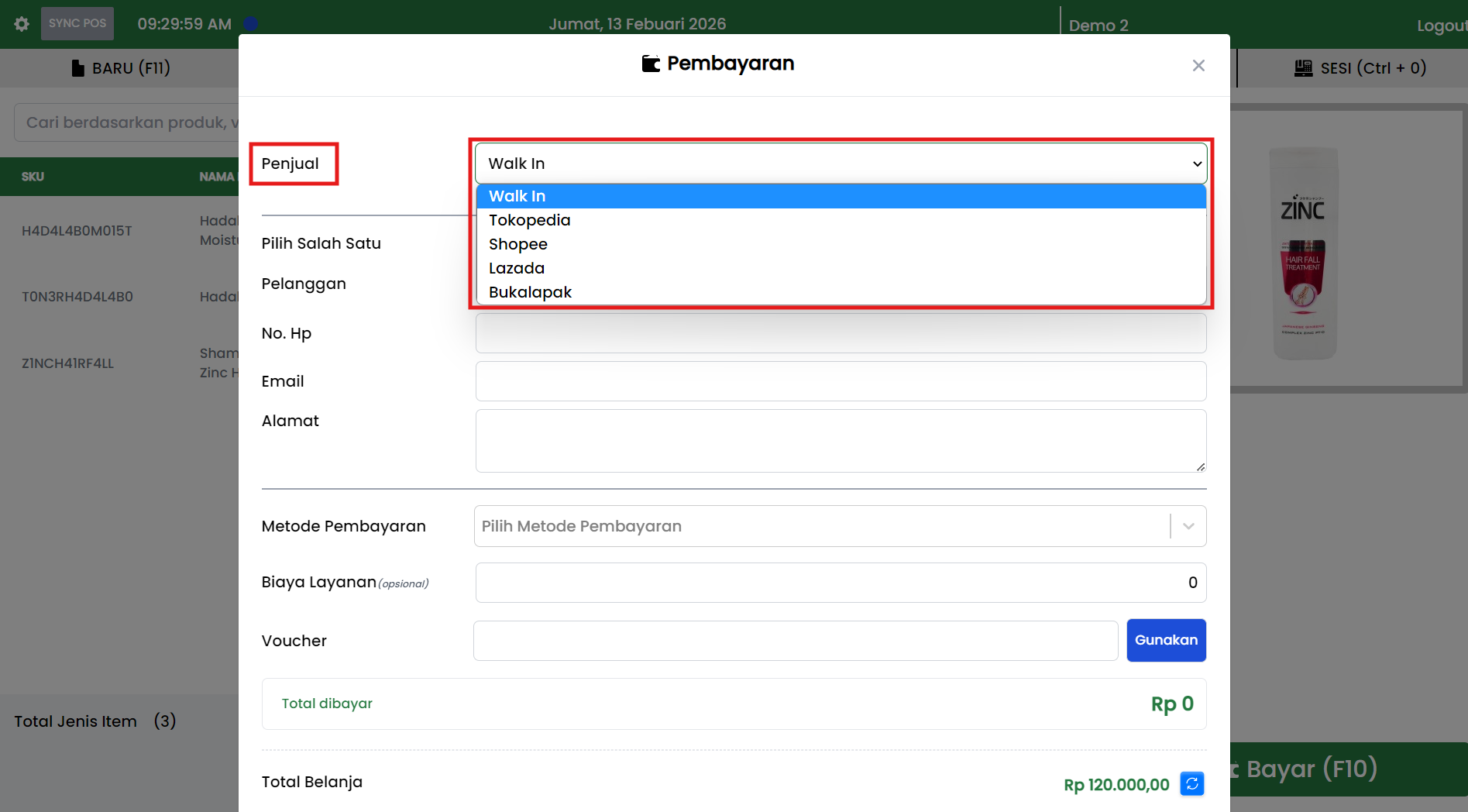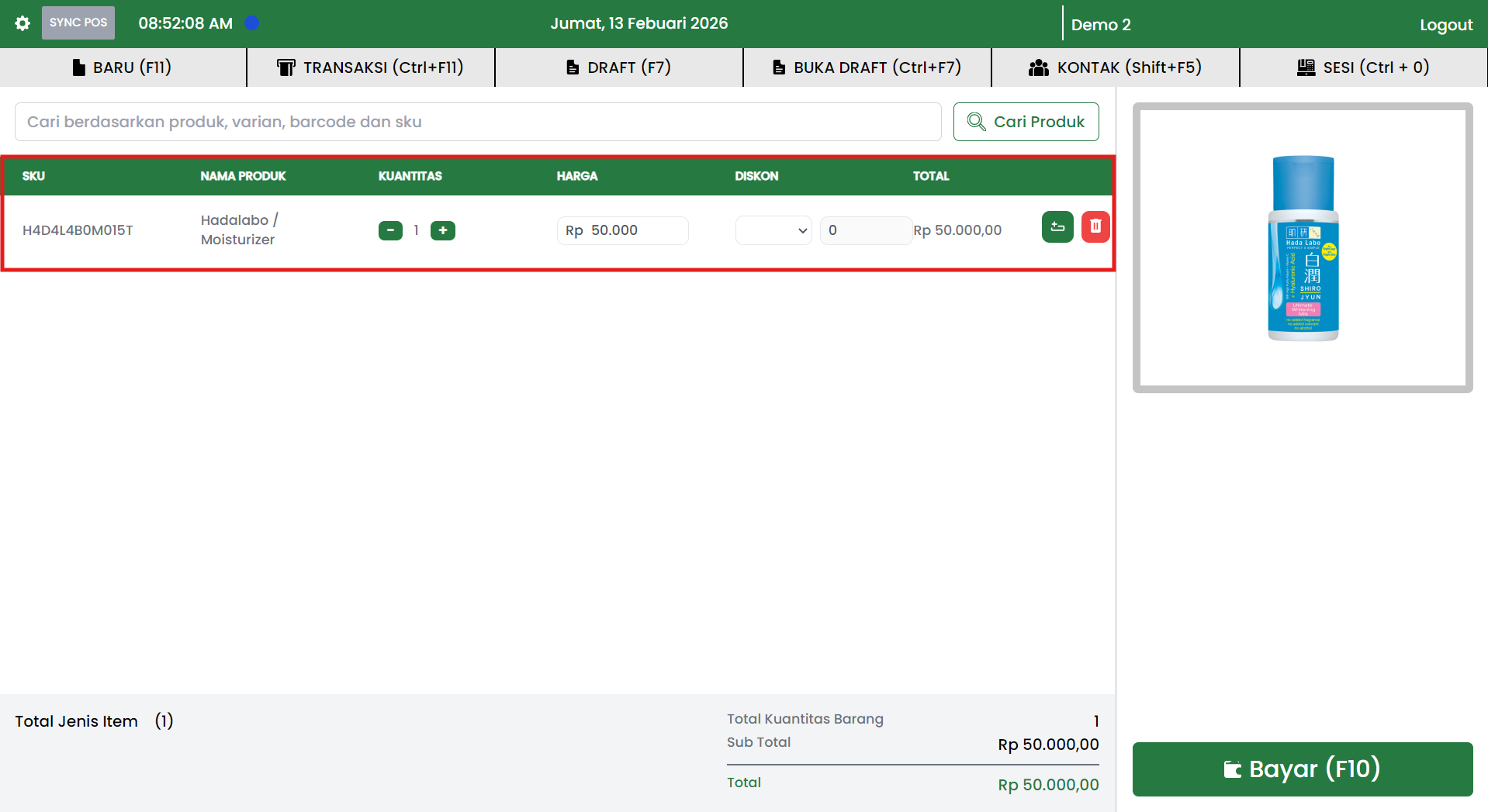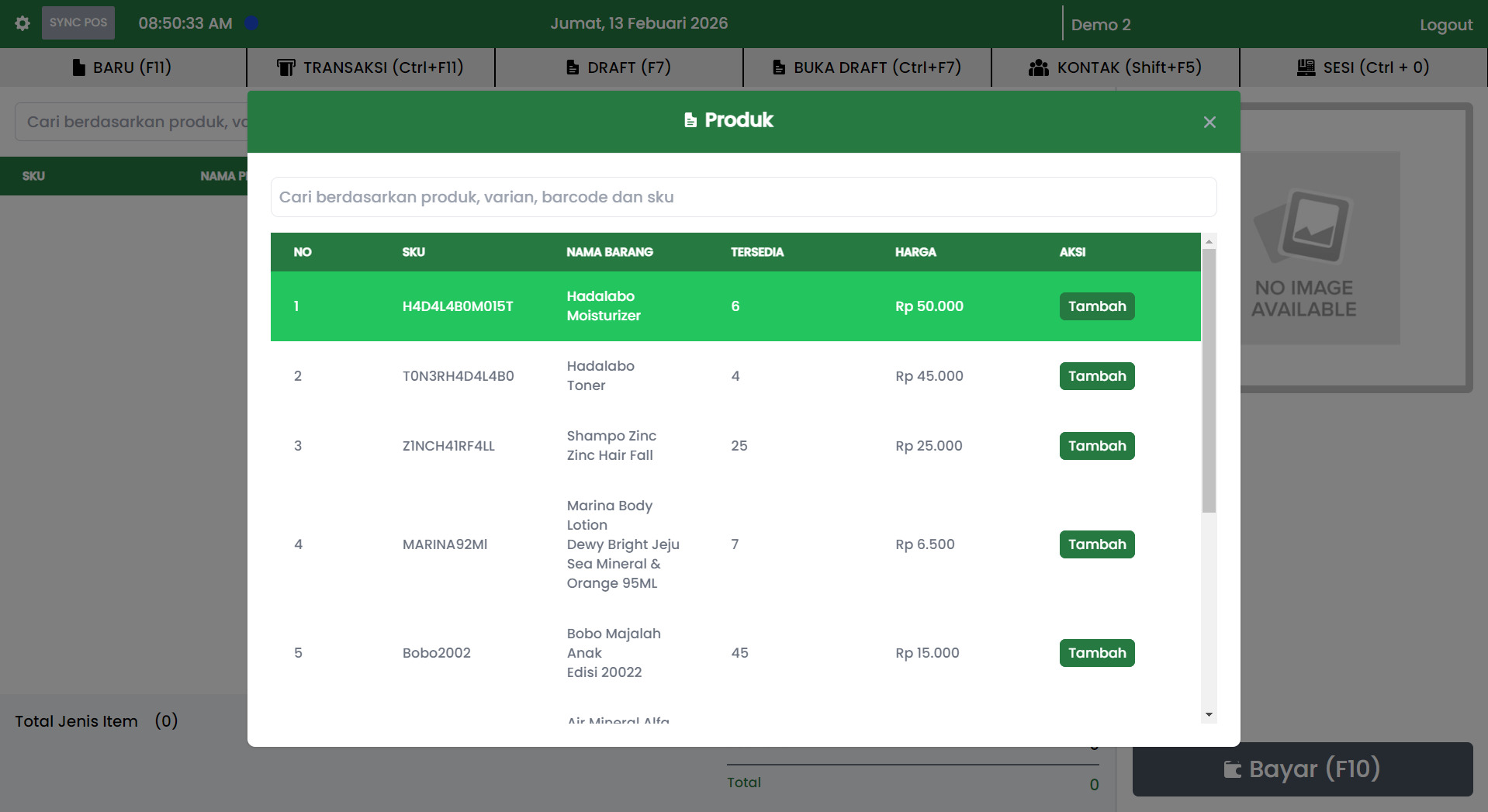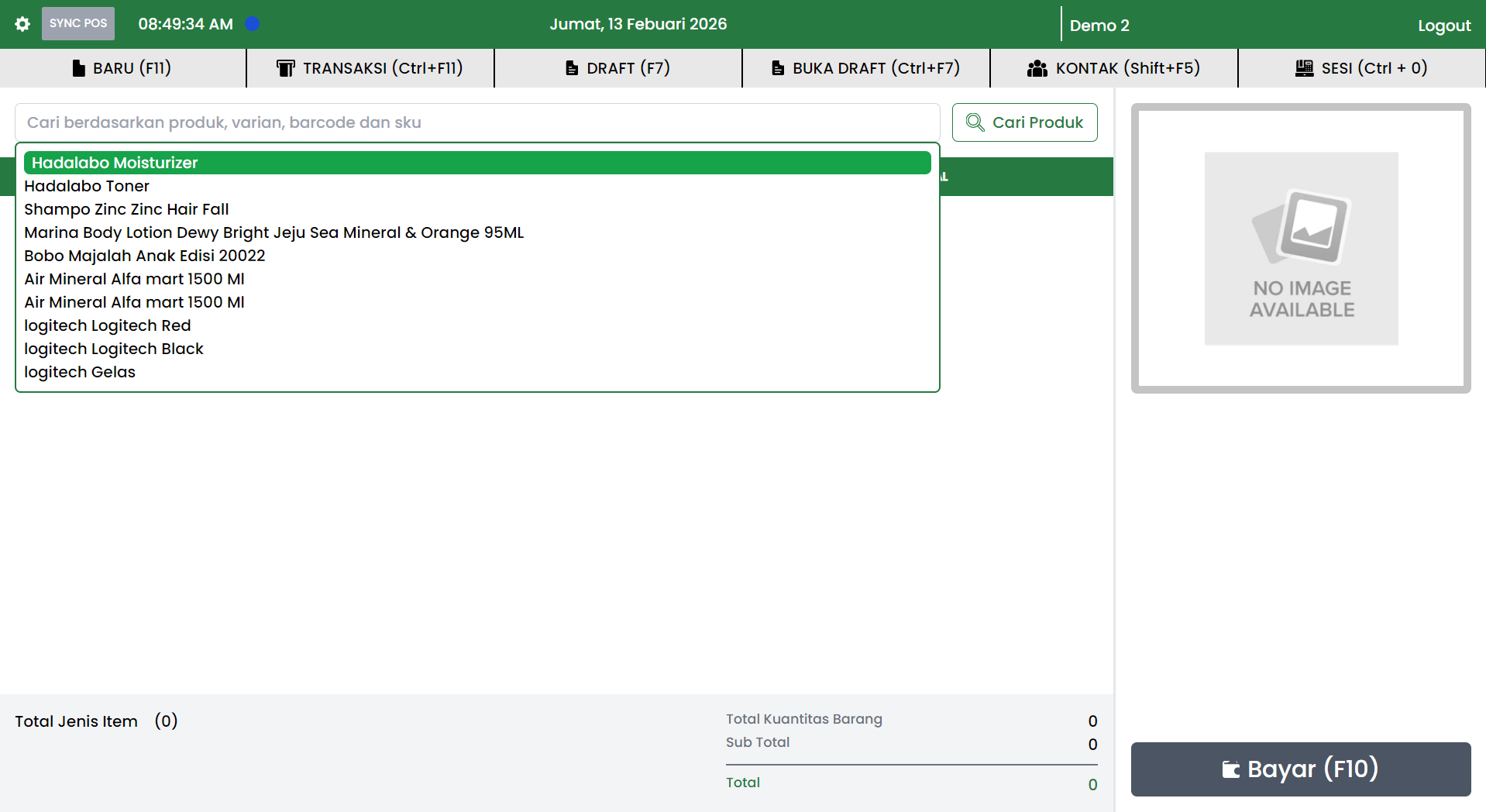 - Pastikan sesi kasir aktif melalui SESI (Ctrl+0).