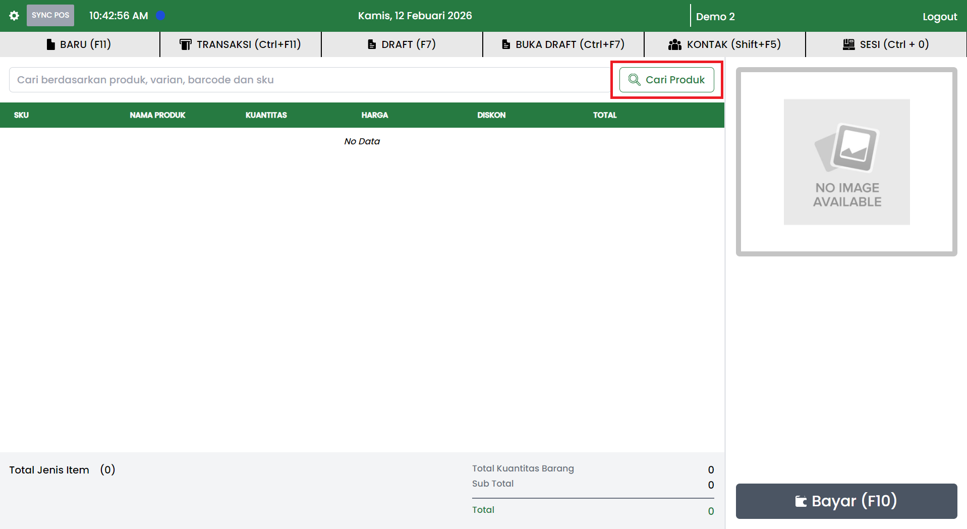 - Jika tabel kosong, mulai dari kolom pencarian produk.