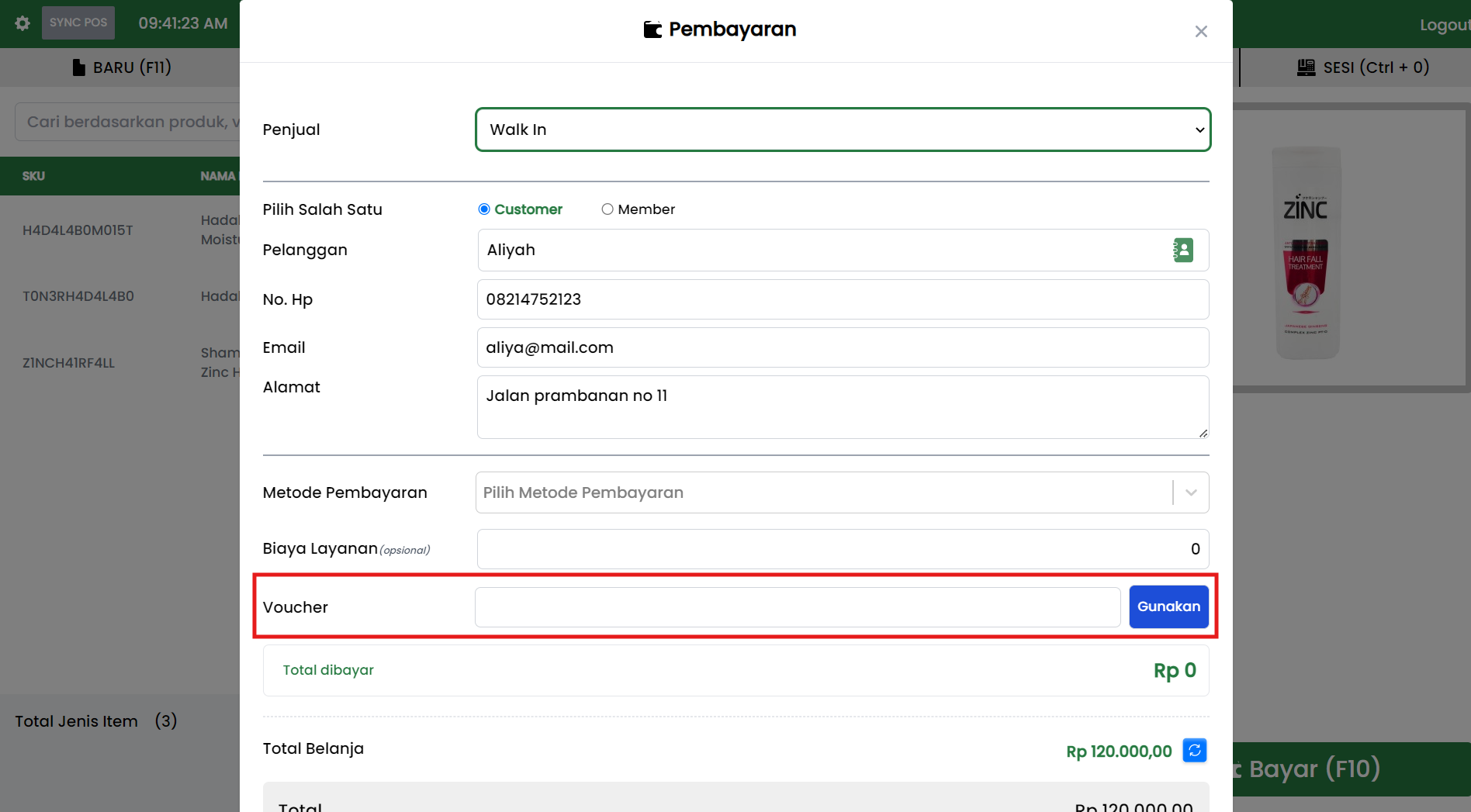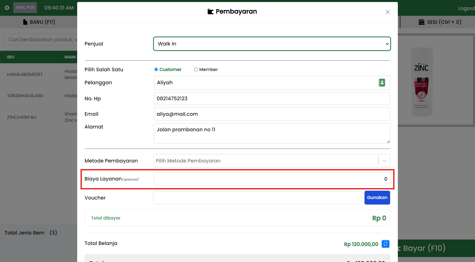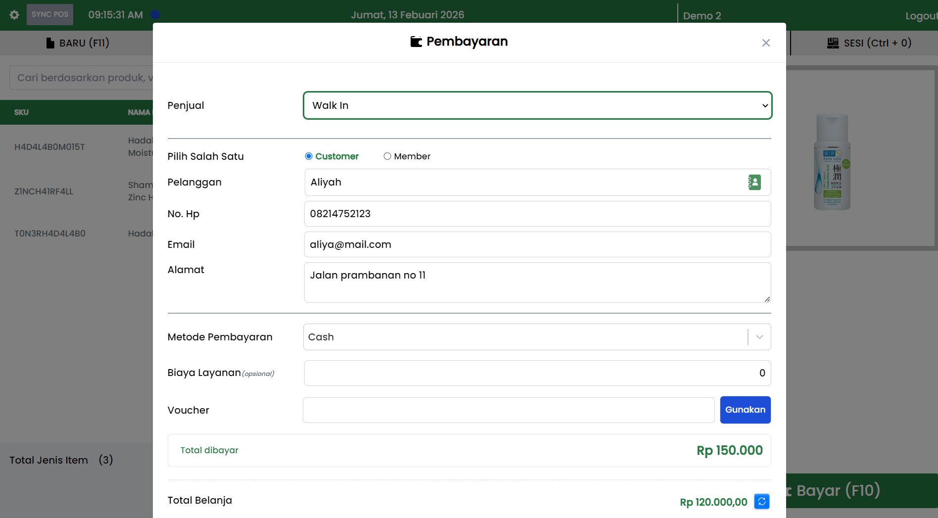 Biasanya otomatis terisi Walk In atau nama kasir.