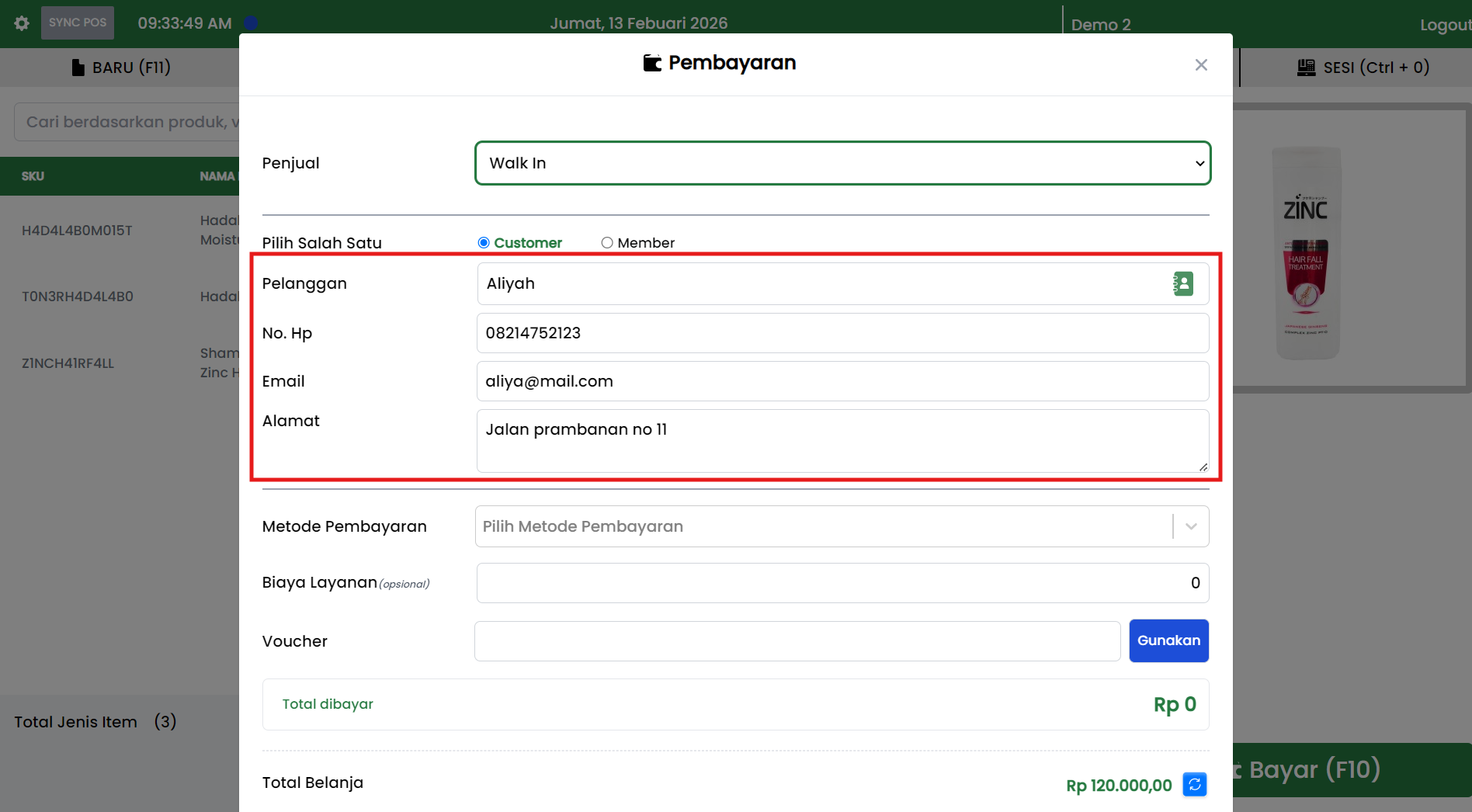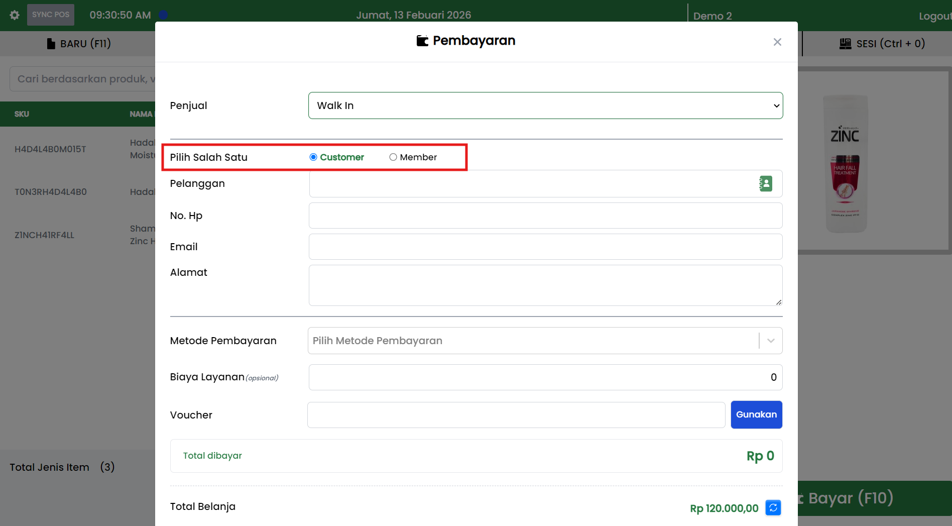 Jika memilih Member, sistem akan menarik data member yang tersimpan.