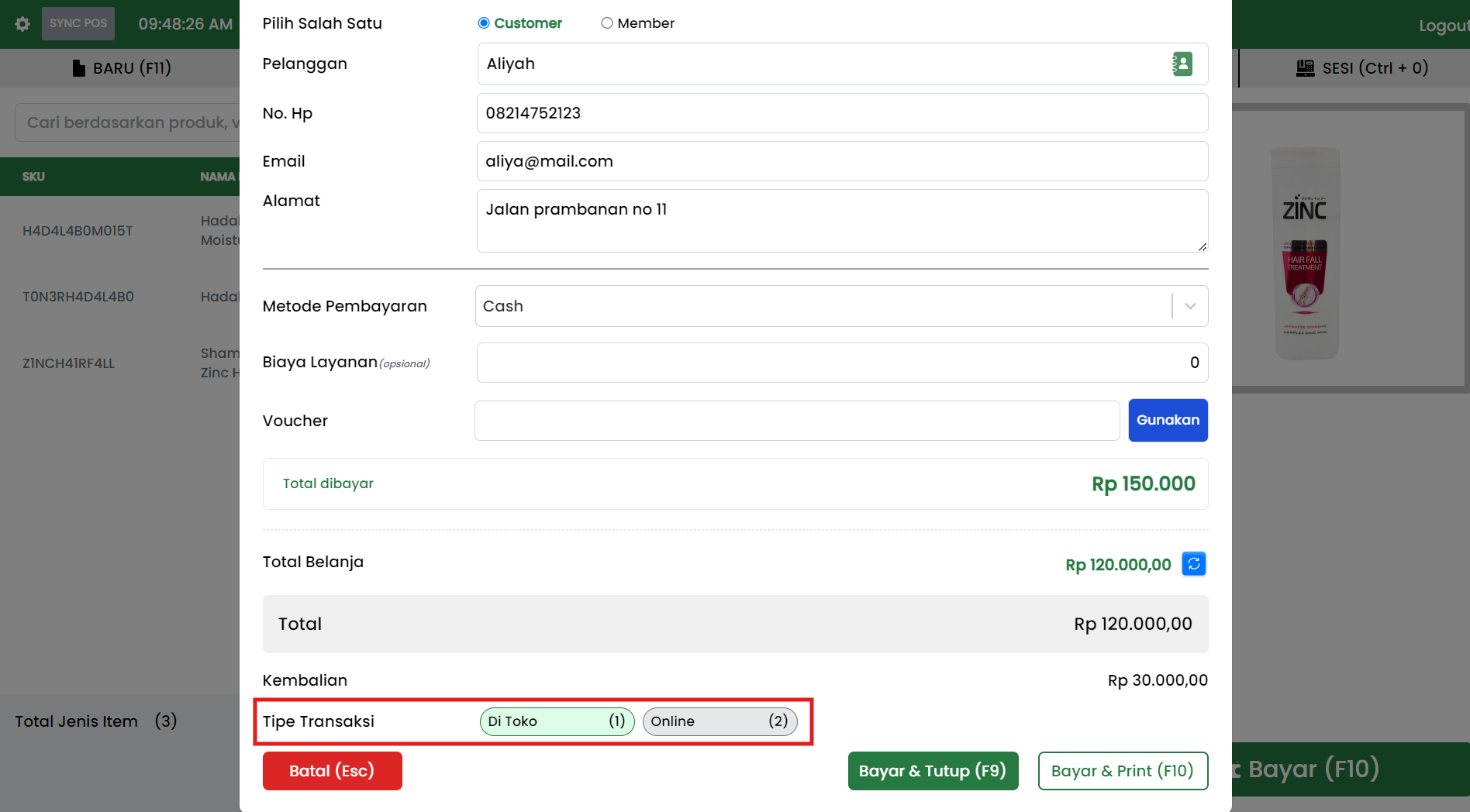 Pilih sesuai kebutuhan. Jika ingin langsung mencetak struk, gunakan Bayar & Print (F10).